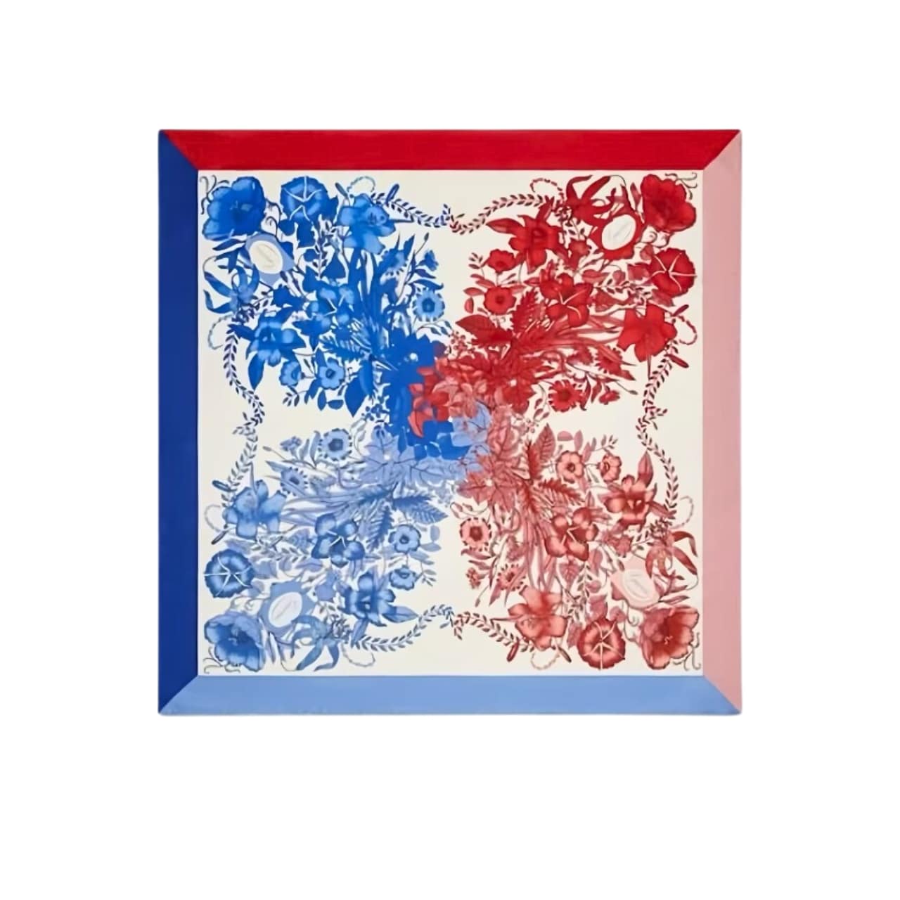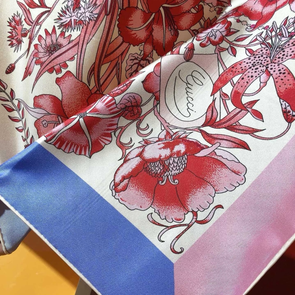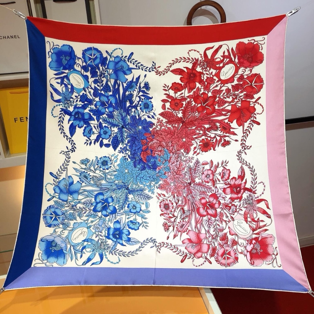 Gucci Floral Print Silk Square Scarf In Blue And Red