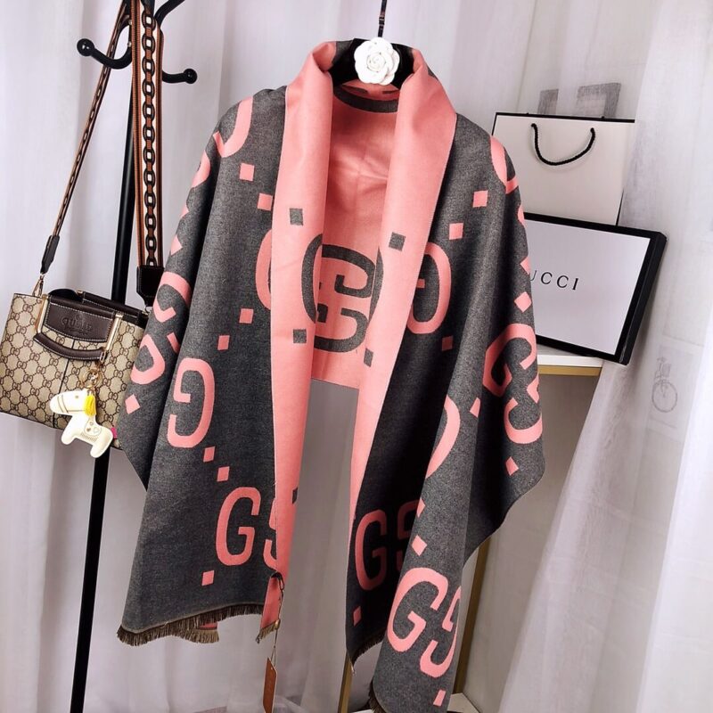 GUCCI GG CASHMERE JACQUARD SCARF GREY AND PINK 674275 3G344 1272