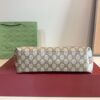 The new GG Emblem collection reinterprets the House’s history of elegance and craftsmanship. This bucket bag highlights a functional design with two main compartments in Web cotton lining and a zip pocket in the middle.