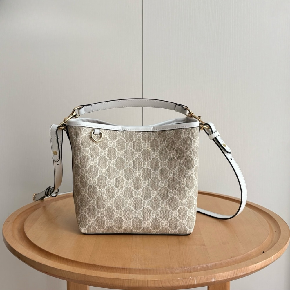 - Beige and white new GG Monogram coated fabric