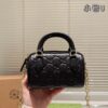 Gucci Gg Emblem Super Mini Top Handle Bag Black Gg Grainy Leather 815255 AAEEM 1000 16Cm / 6.3 Inches