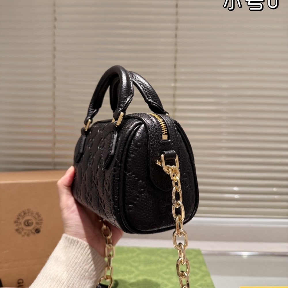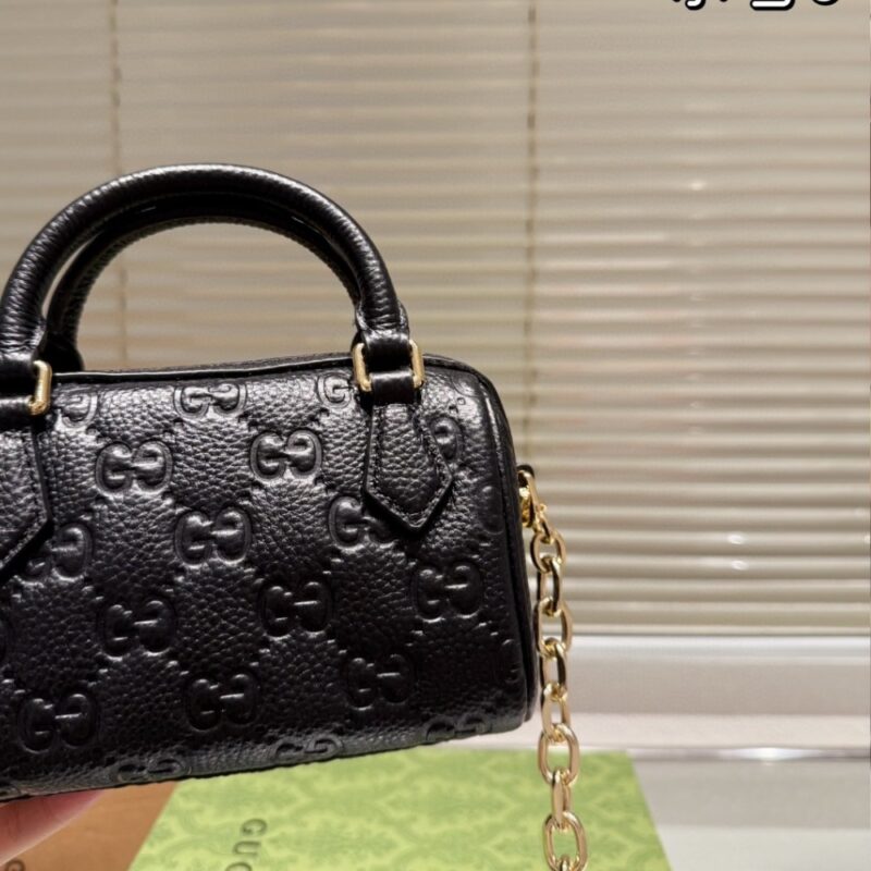 Gucci Gg Emblem Super Mini Top Handle Bag Black Gg Grainy Leather 815255 AAEEM 1000 16Cm / 6.3 Inches