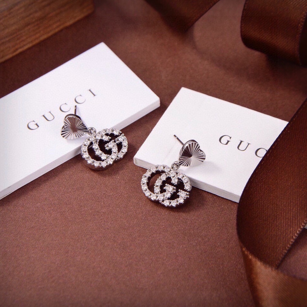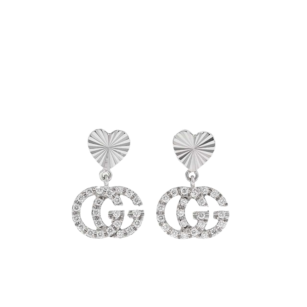 GUCCI GG HEART EARRINGS SILVER WITH CRYSTALS