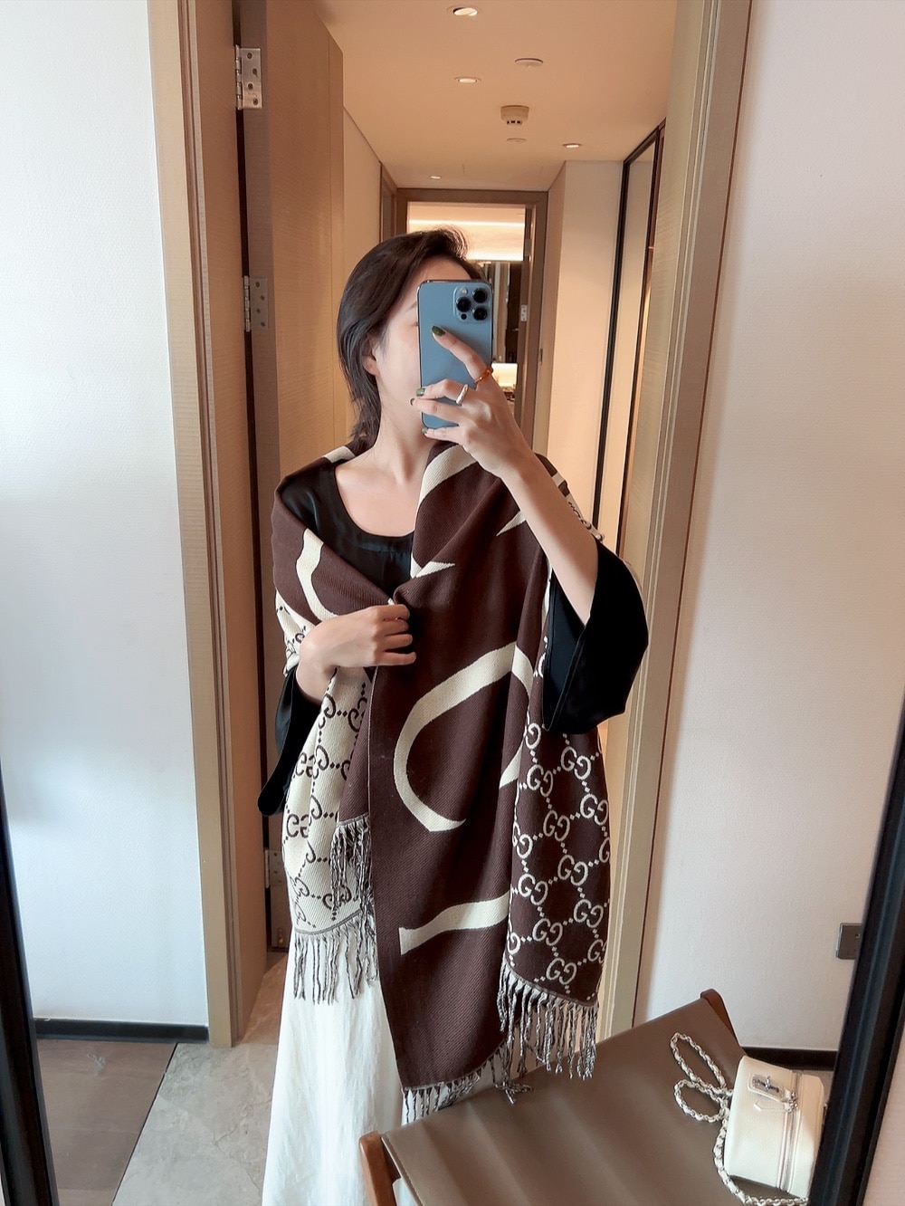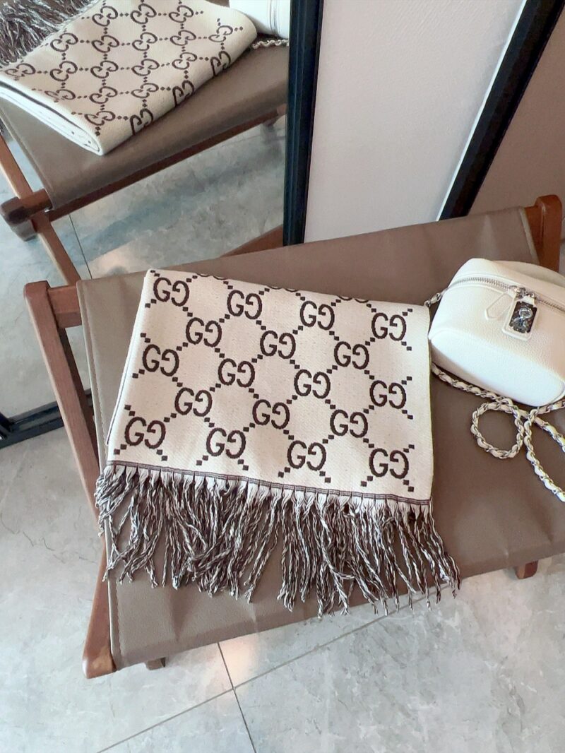 GUCCI GG JACQUARD SCARF WIHTE AND BROWN