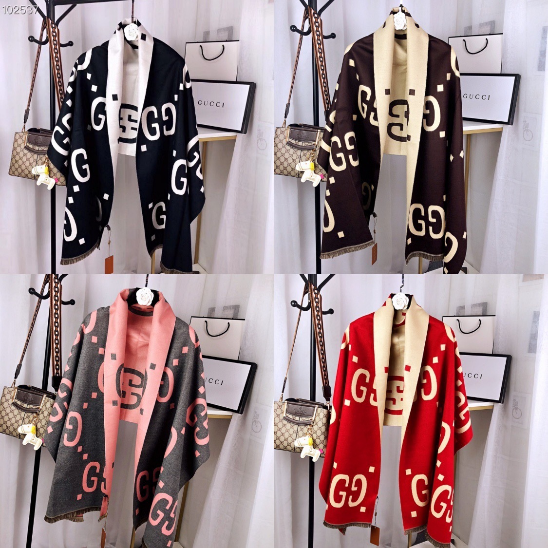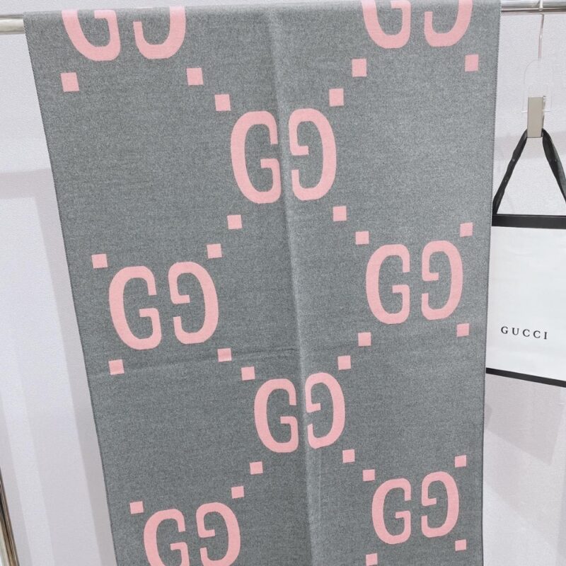 Gucci GG Jacquard Grey Pink / 70.9 x 27.6 inches / Wool Silk Scarf / Cozy Scarf