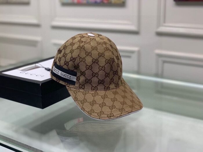 GUCCI GG LOGO WITH BAND BASEBALL CAP BROWN