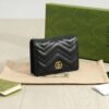 The GG Marmont collection is defined by the emblematic Double G hardware – a contemporary take on a Gucci archival belt buckle from the ’70s that has become a hallmark of the House. The card case wallet is crafted in soft leather that coordinates with bags of the collection.