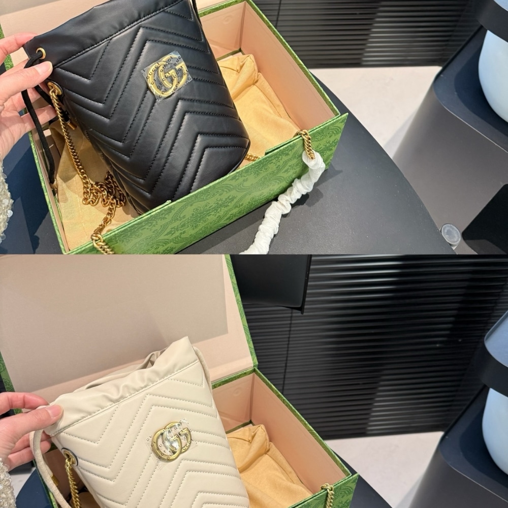 Gucci GG Marmont Mini Bucket Bag White Matelassé Chevron 12Cm 575163 DTDRT 9022
