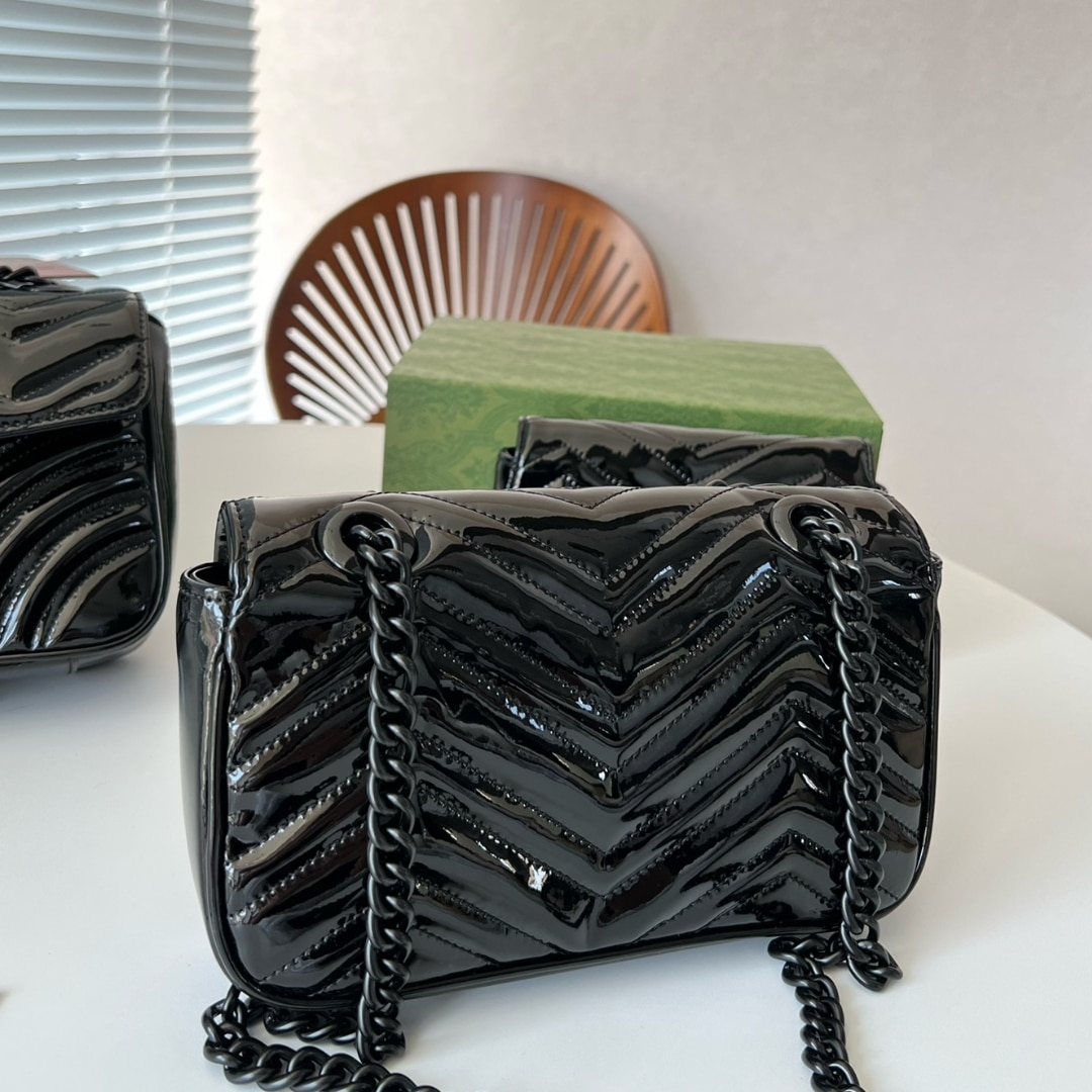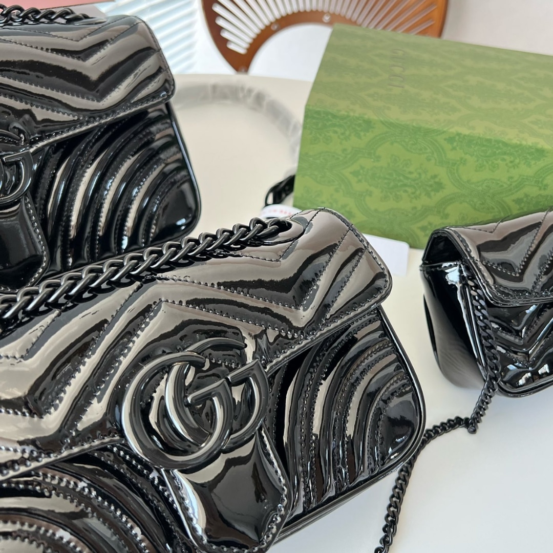 GUCCI GG MARMONT PATENT SUPER MINI BAG BLACK PATENT 476433 AACDE 1000