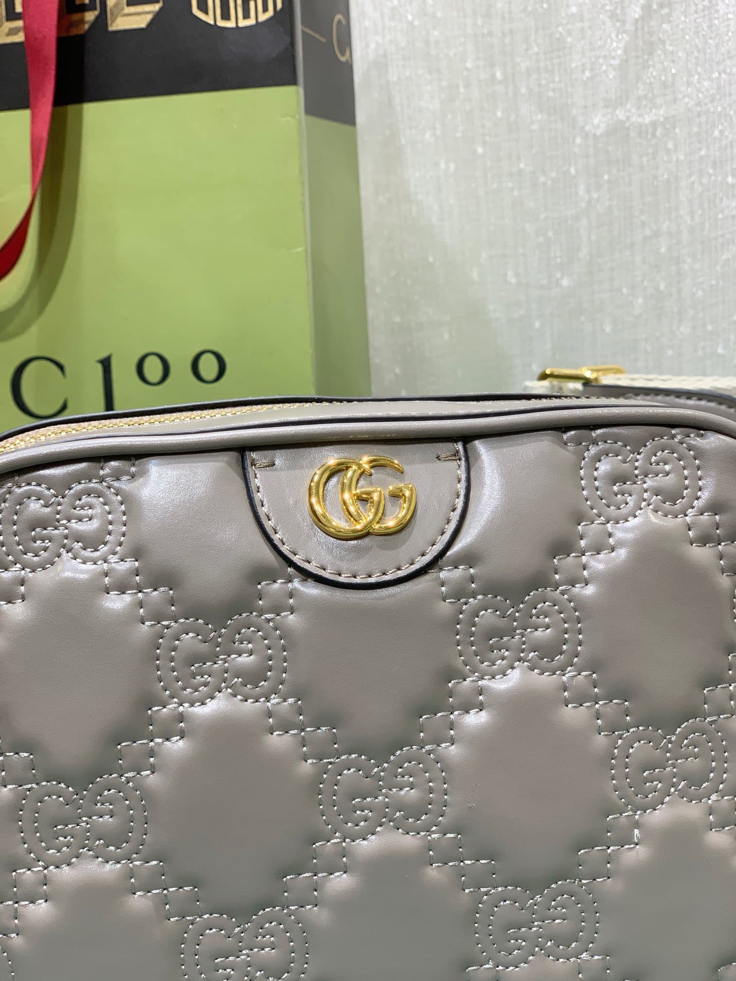- Dusty grey GG Matelassé leather