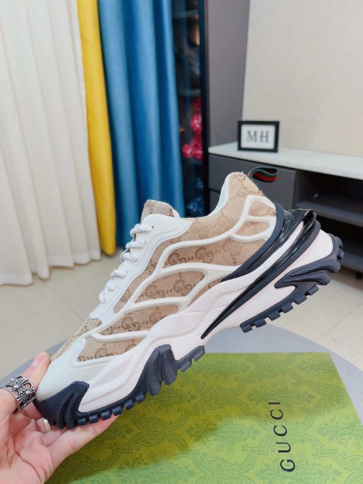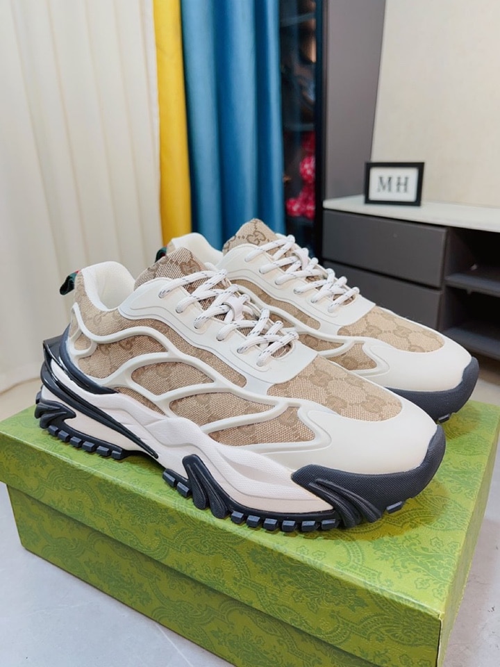 GUCCI GG MEN’S SNEAKER RUBBER LEATHER BEIGE
