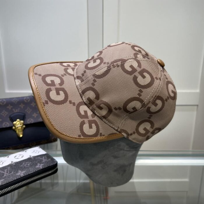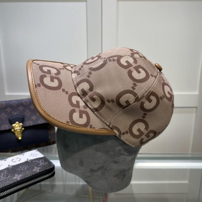 GUCCI GG MONOGRAM COTTON BLEND CANVAS BASEBALL CAP BROWN