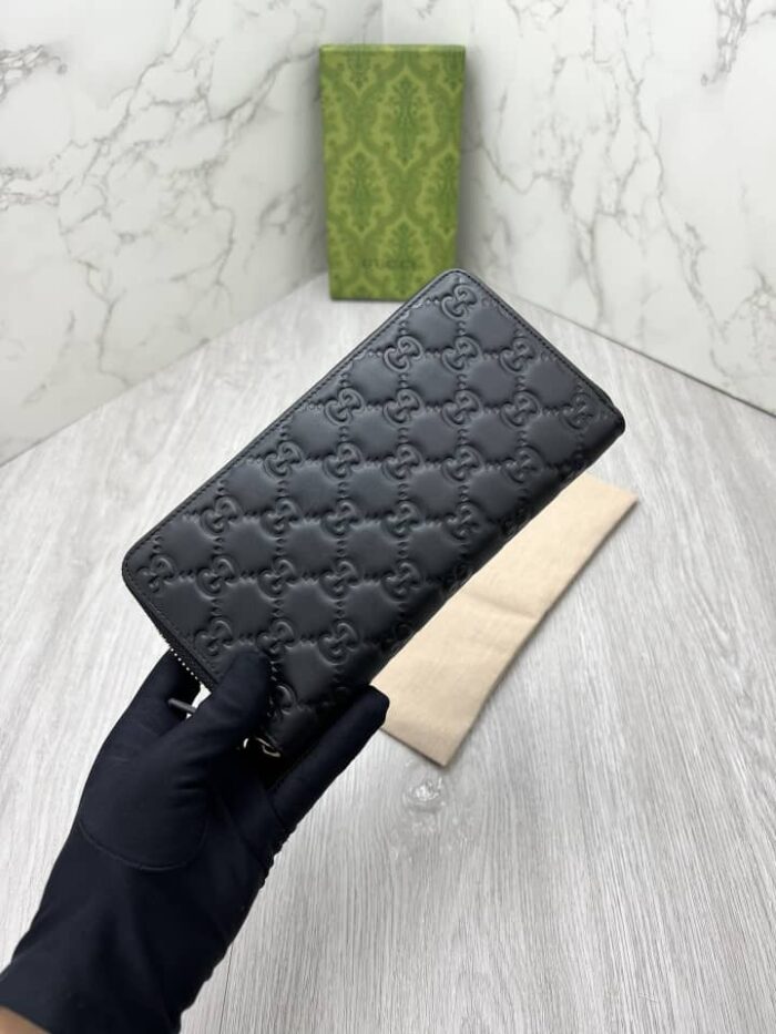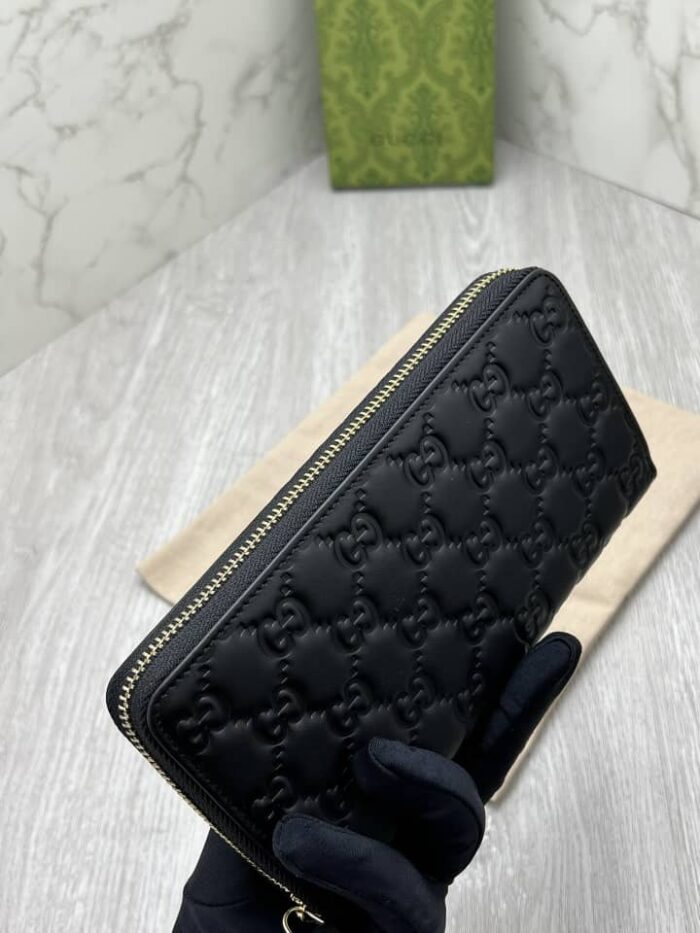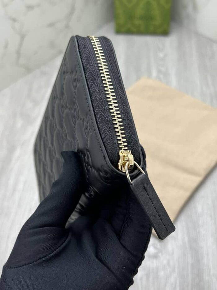 GUCCI GG SIGNATURE ZIP WALLET BLACK 19CM 625558 1W3AN 1000