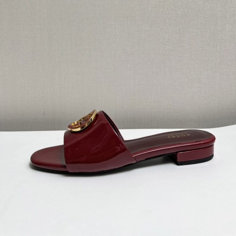 GUCCI WOMEN ROUND INTERLOCKING G SANDAL IN BURGUNDY 820860 BNC00 6207