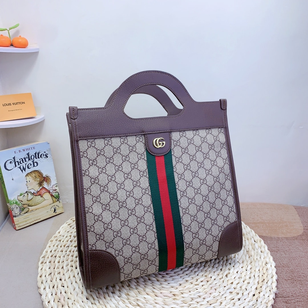 Gucci//GG Supreme Ophidia Vertical Tote//Brown//33cm