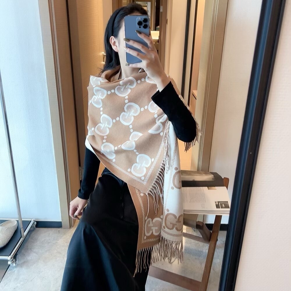 Gucci GG Wool Jacquard Scarf Brown 180Cm
