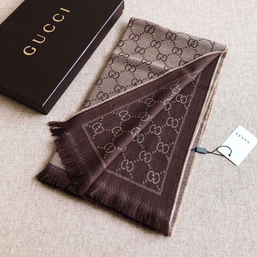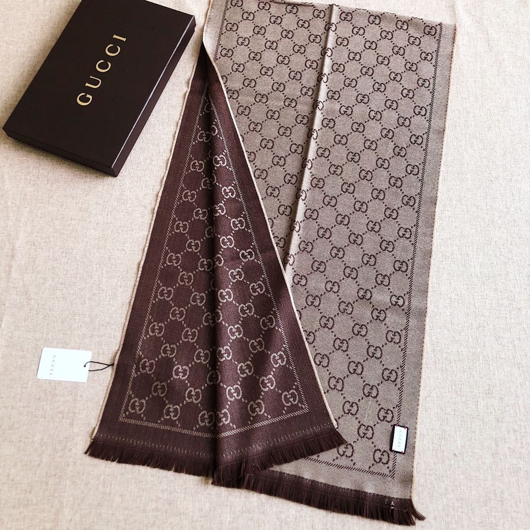 Gucci GG Wool Scarf Brown / 70.9 x 18.9 inches / Wool Scarf / Cozy Scarf