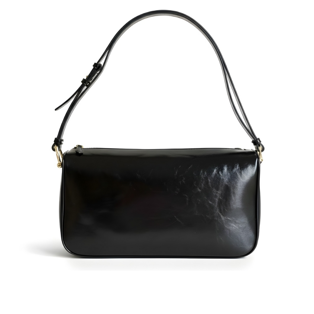 - Black soft glossy leather