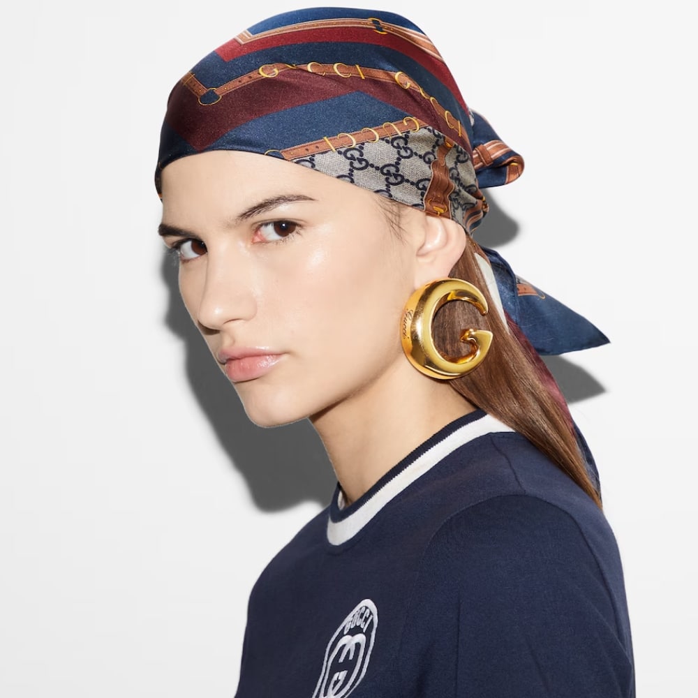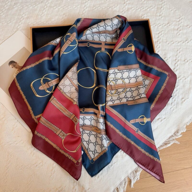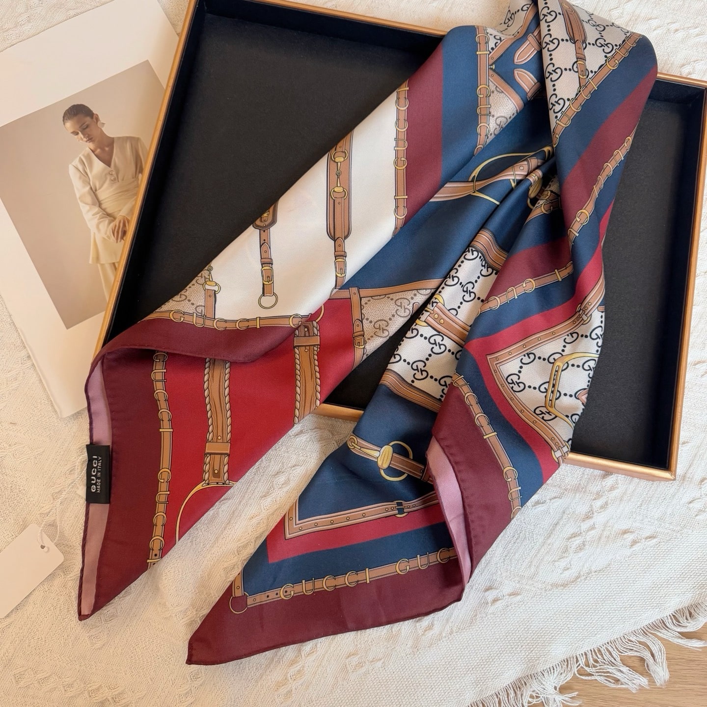 Gucci Heritage Print Silk Scarf Brown and red 90cm 786222 3G001 6168