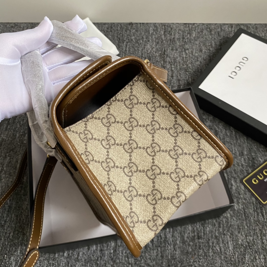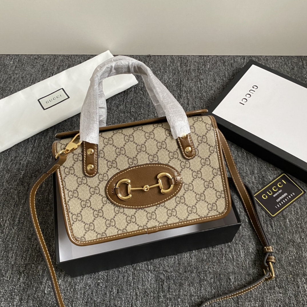 Gucci Horsebit 1955 mini top handle bag / Beige and ebony GG Supreme canvas