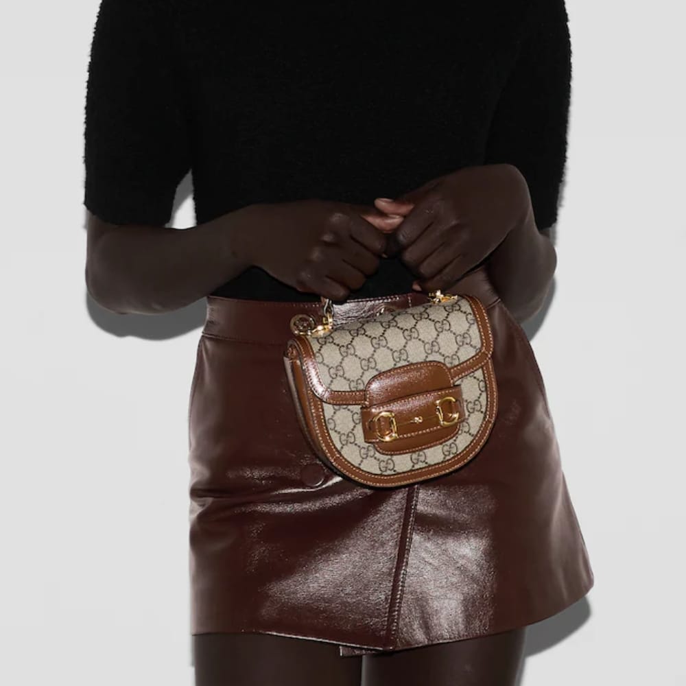 Gucci Horsebit 1955 Mini Top Handle Bag Beige And Ebony 781387 92TCG 8563 14 cm / 5.5 inches