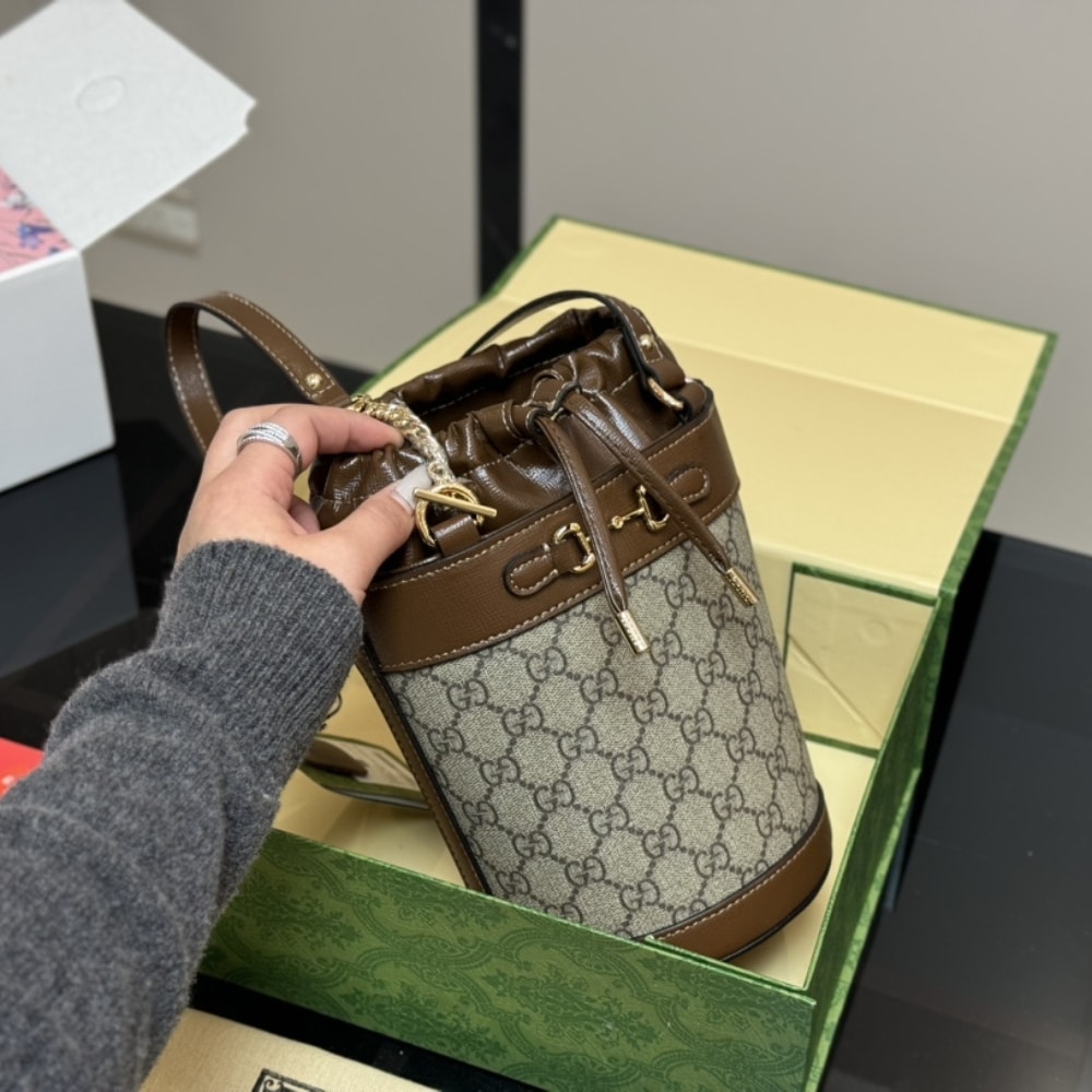 GUCCI HORSEBIT 1955 SMALL BUCKET BAG BROWN 18CM