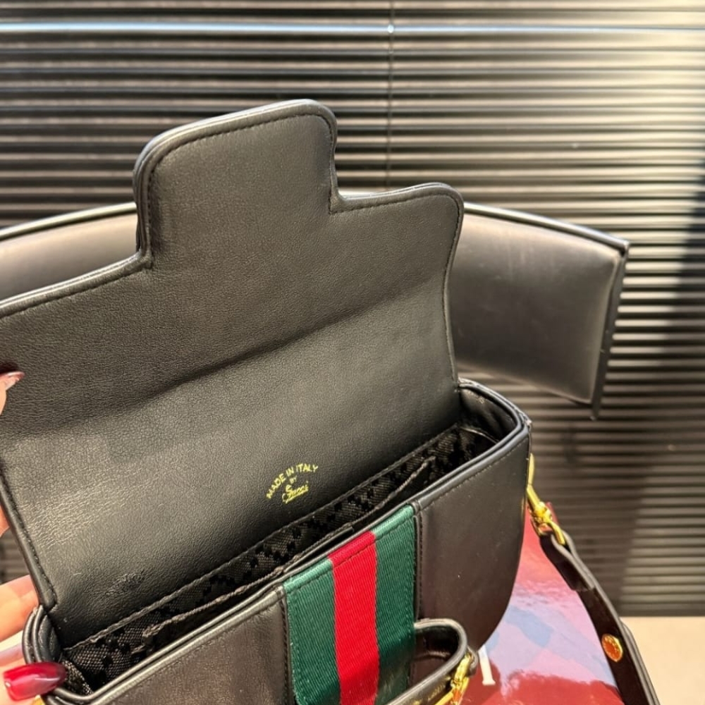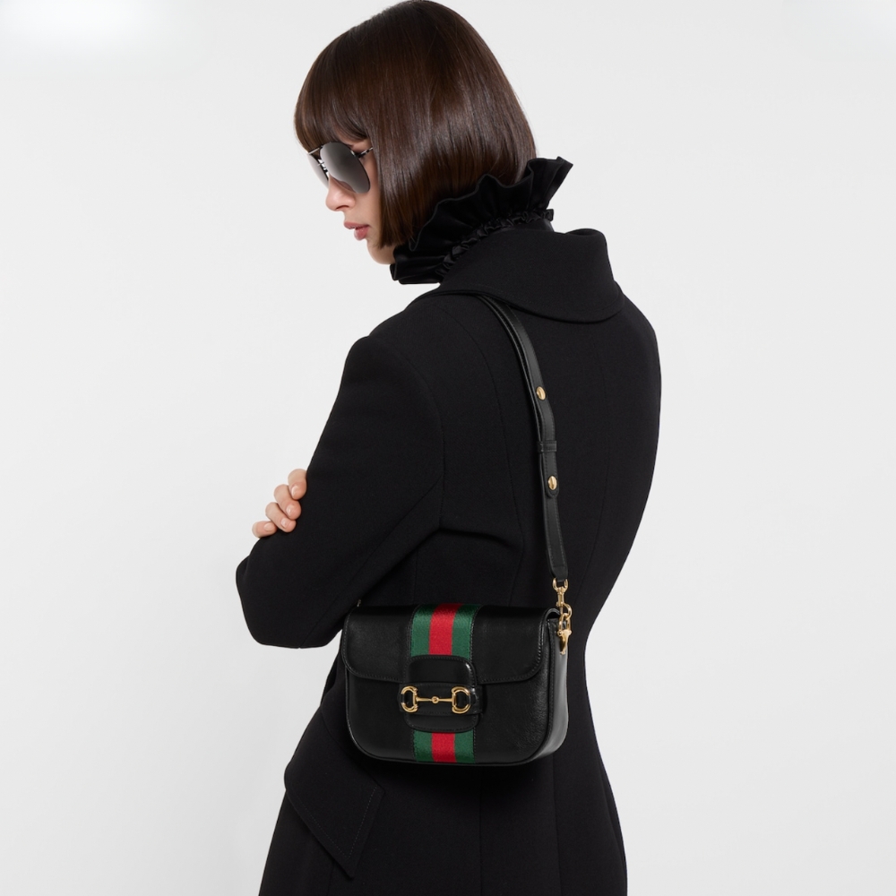 Gucci Horsebit 1955 Small Shoulder Bag Black Leather 21cm 866762 AAGIQ 1053
