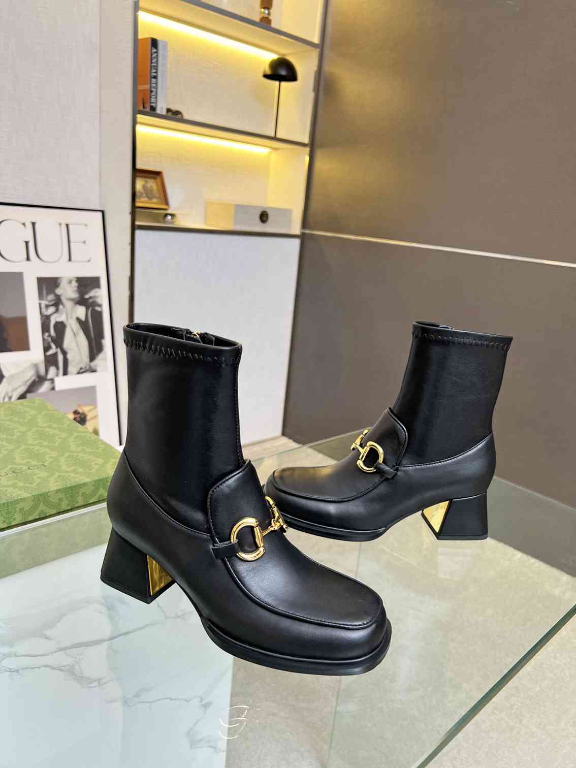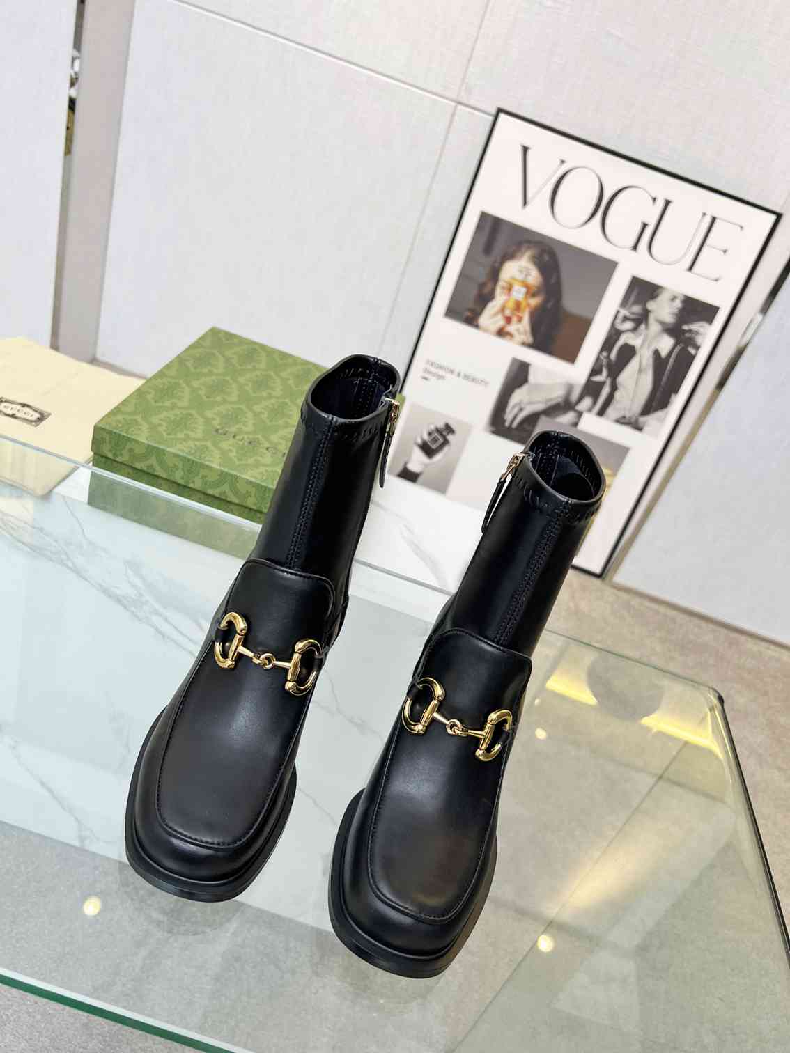 GUCCI HORSEBIT PLAQUE ANKLE BOOTS BLACK 719830 1DO50 1000