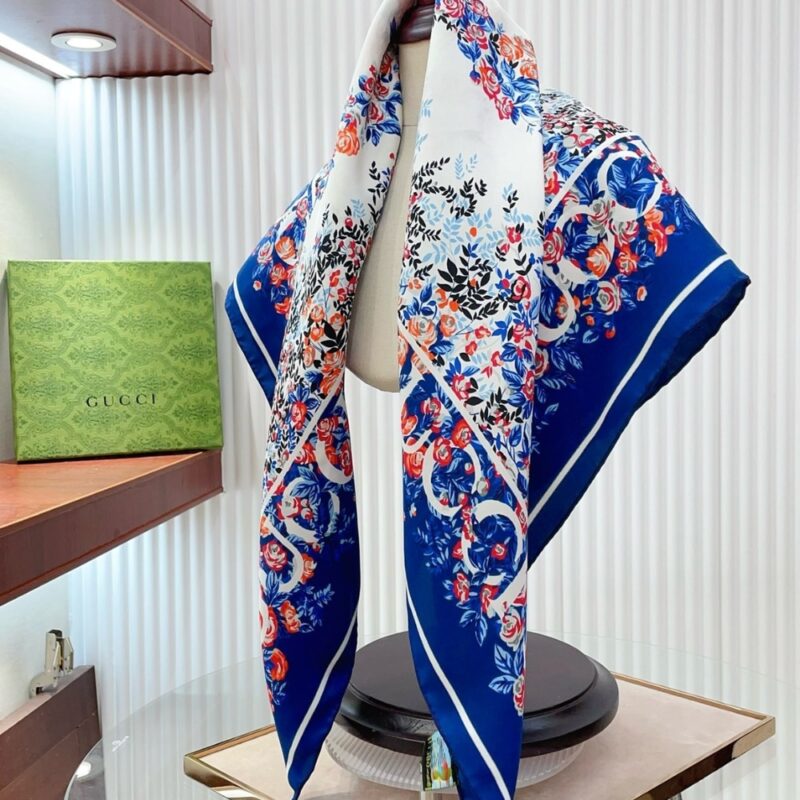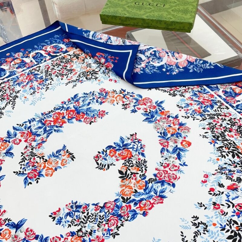 Gucci Interlocking G Floral Print Silk Carré Navy And Red 783157 3G001 4174