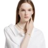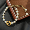 A Round Interlocking G charm detail is accompanied by a new pearl boule chain to define this bracelet. Matching necklaces feature the same easy sliding closure with a push button.