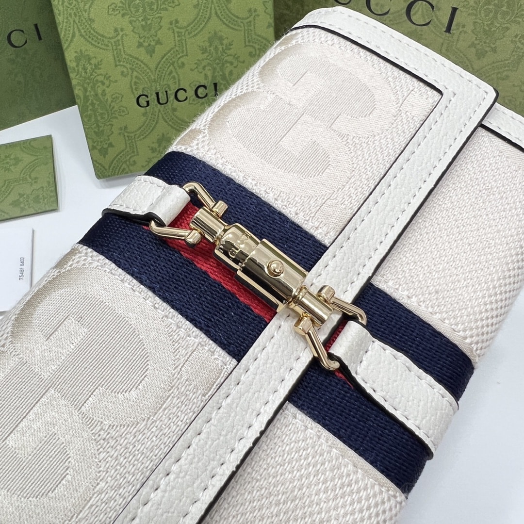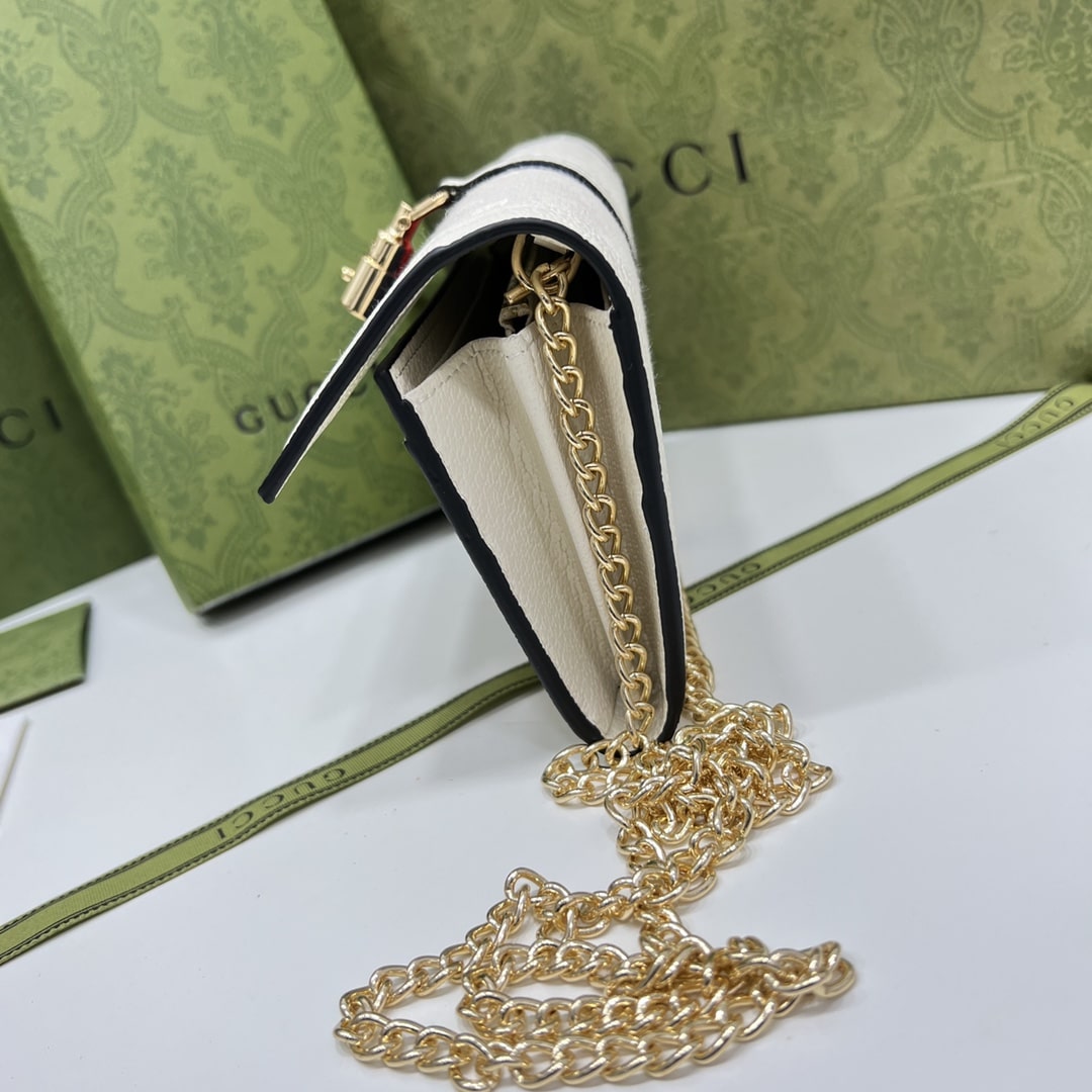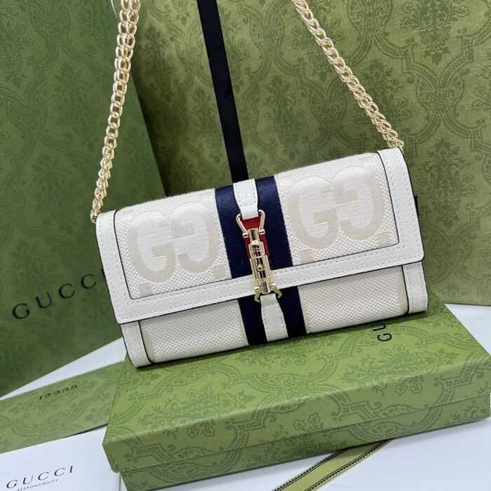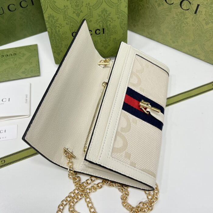 GUCCI JACKIE 1961 CHAIN WALLET BEIGE AND EBONY GG 19CM 652681 HUHHG 8565