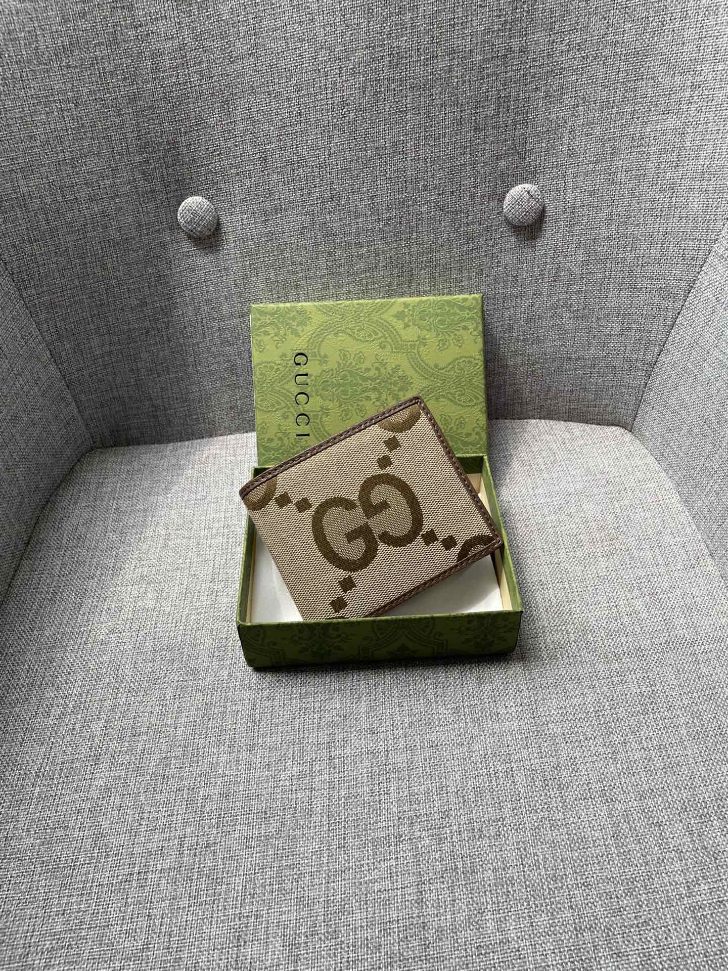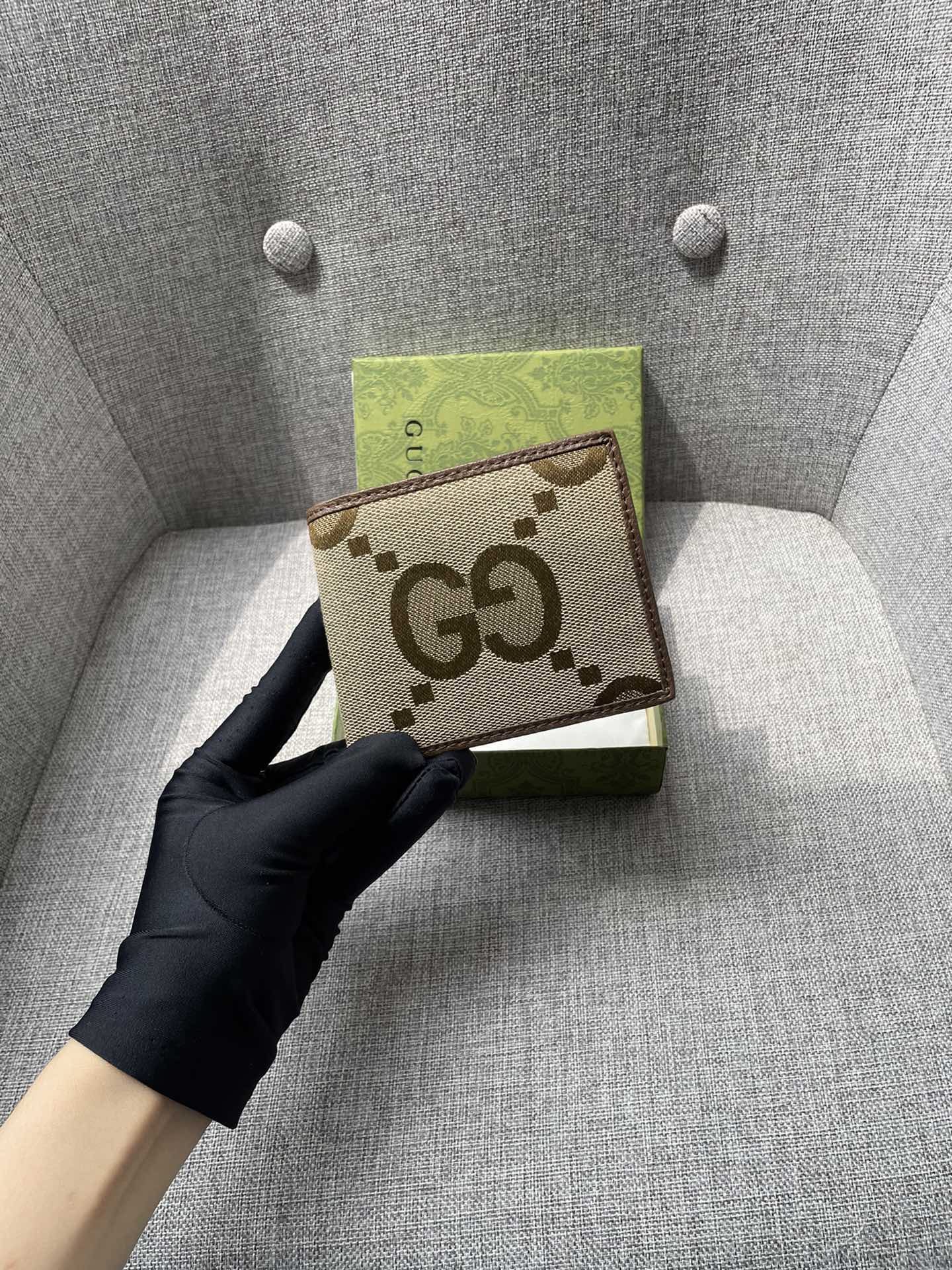 Gucci Jumbo Gg/11cm Wallet Camel And Ebony Canvas 699308