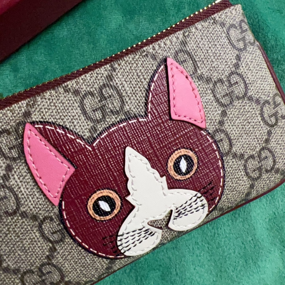 Gucci Key Case With Gg And Cat Detail Beige And Dark Brown 12 cm / 4.7 inches