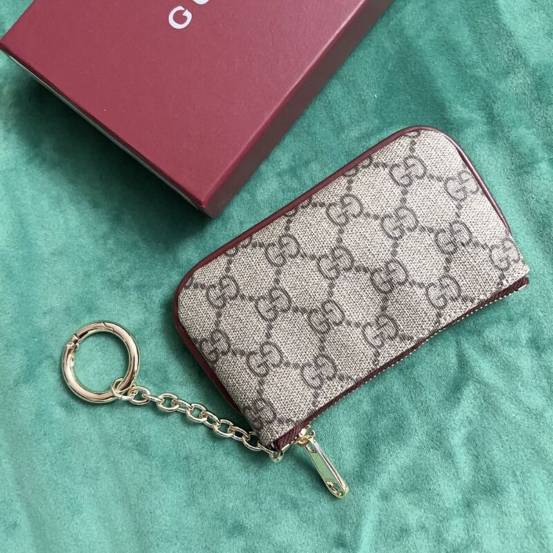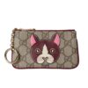GUCCI KEY CASE WITH GG AND DOG DETAIL BEIGE AND DARK BROWN 12CM