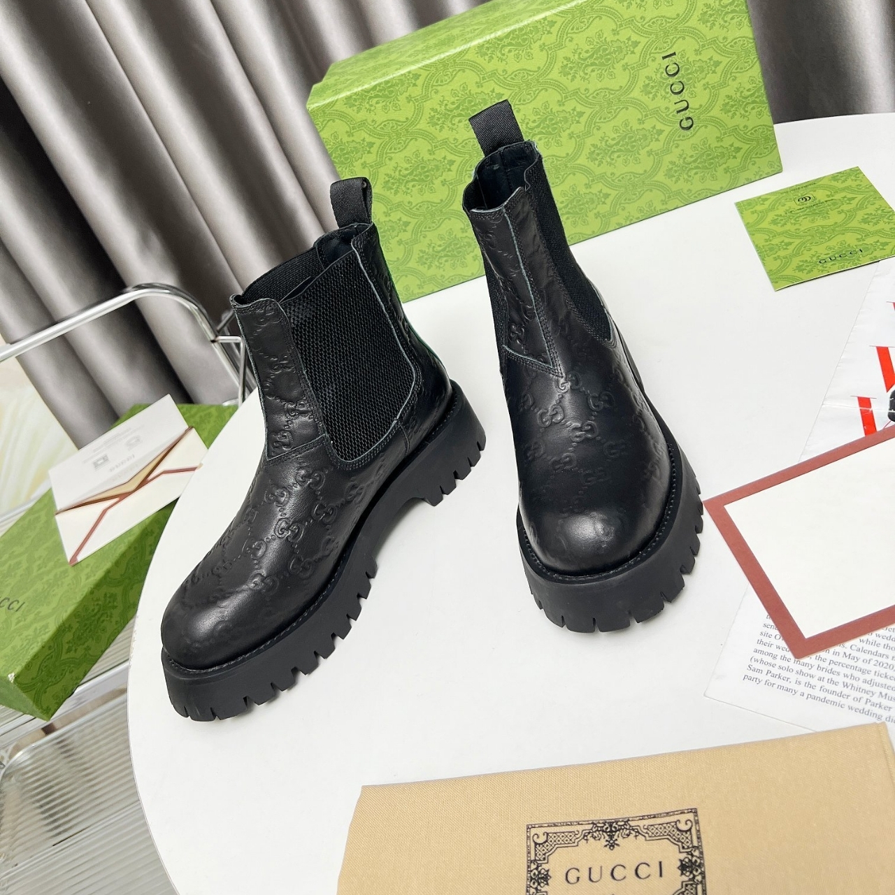 GUCCI LEATHER ANKLE BOOT WITH WEB DETAIL BLACK 794168 AADPF 1056