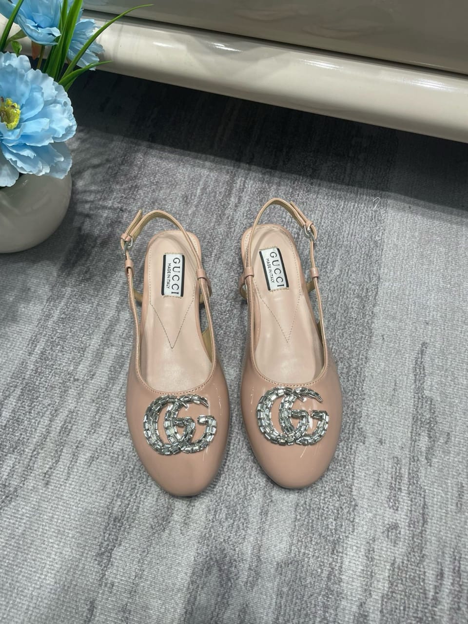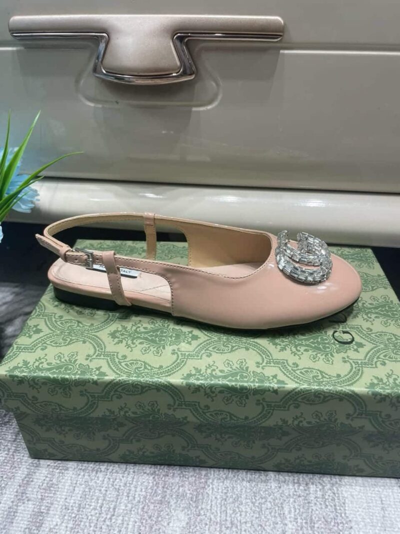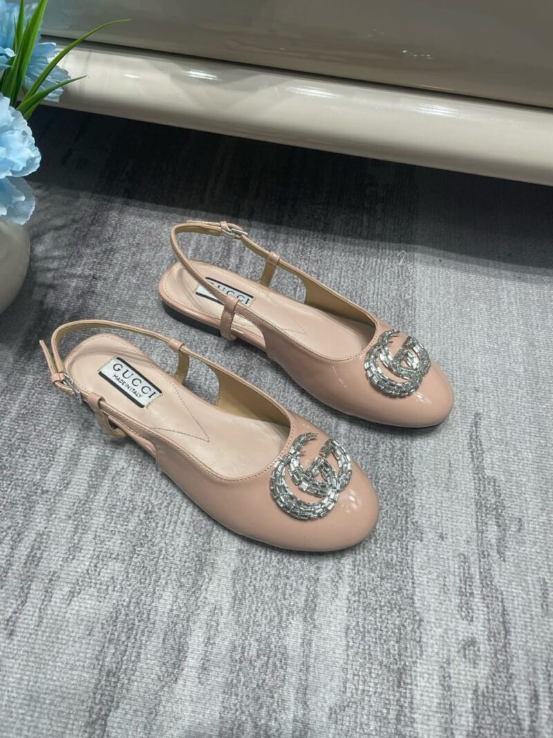 GUCCI LOGO EMBELLISHED SLINGBACK FLATS LIGHT PINK