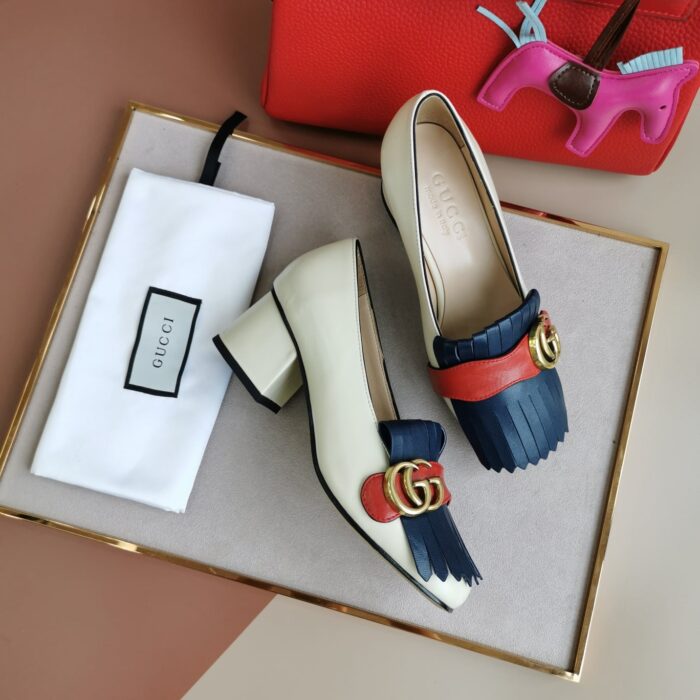 GUCCI MARMONT FRINGED LOAFER MID HEEL WHITE BLUE LEATHER 408208 C9DN0 9574