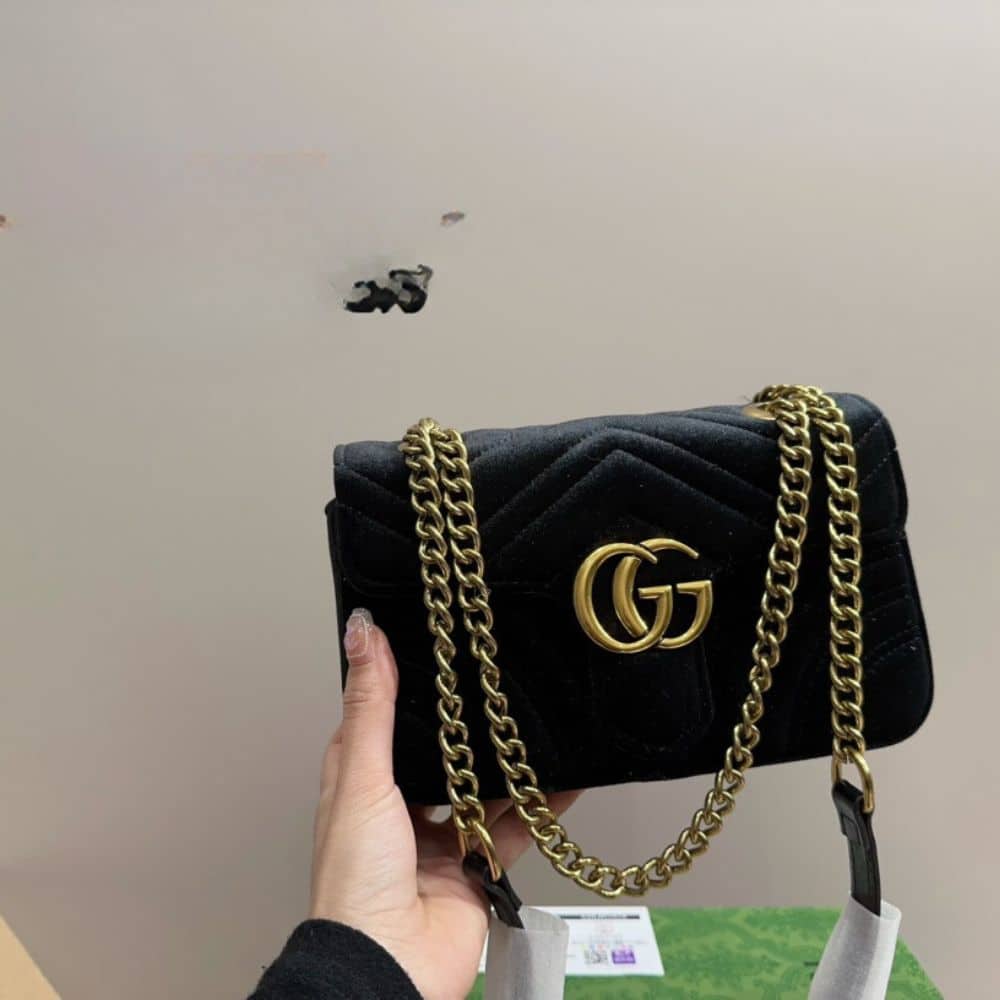 Gucci Marmont Velvet Shoulder Bag / Black 21cm