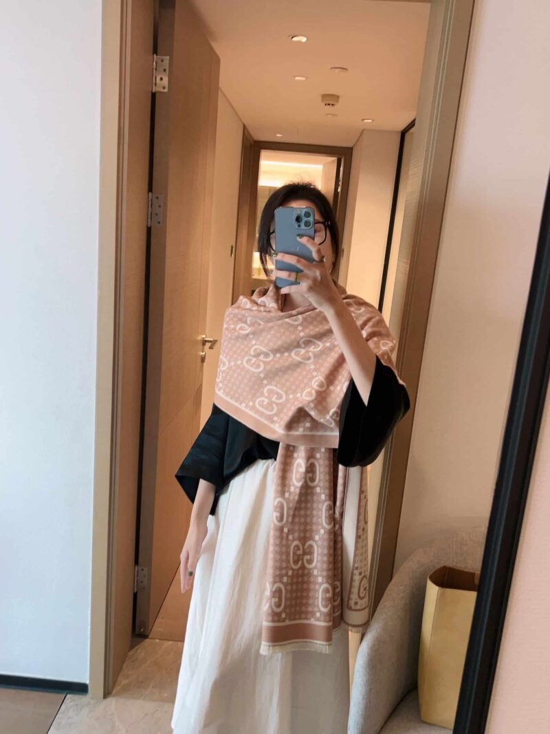 - Beige and brown GG cotton silk jacquard