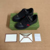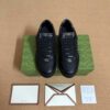 Influenced by classic sneakers from the 1970s, the Screener sneaker is named for the defensive sports move. Here the emblematic style is presented in black leather with an embossed GG leather insert