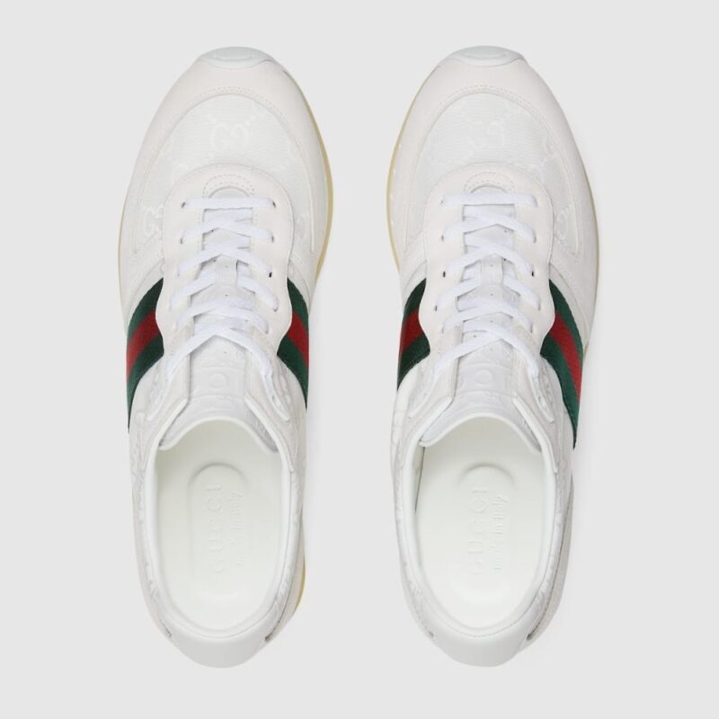 - Tongue with 3D Gucci script logo and Interlocking G, created with a high-frequency embossing process