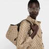 Introducing Spring Summer 2026.The Mercato new tote design is inspired by a spacious shopper and Italian markets. It can be worn with the sides either cinched or open, while featuring an easy-to-use piston closure. Crafted from lightweight yet structured GG canvas in the vintage-inspired shade of sand, the style reveals a new lining with Diamante motif taken from the archive.