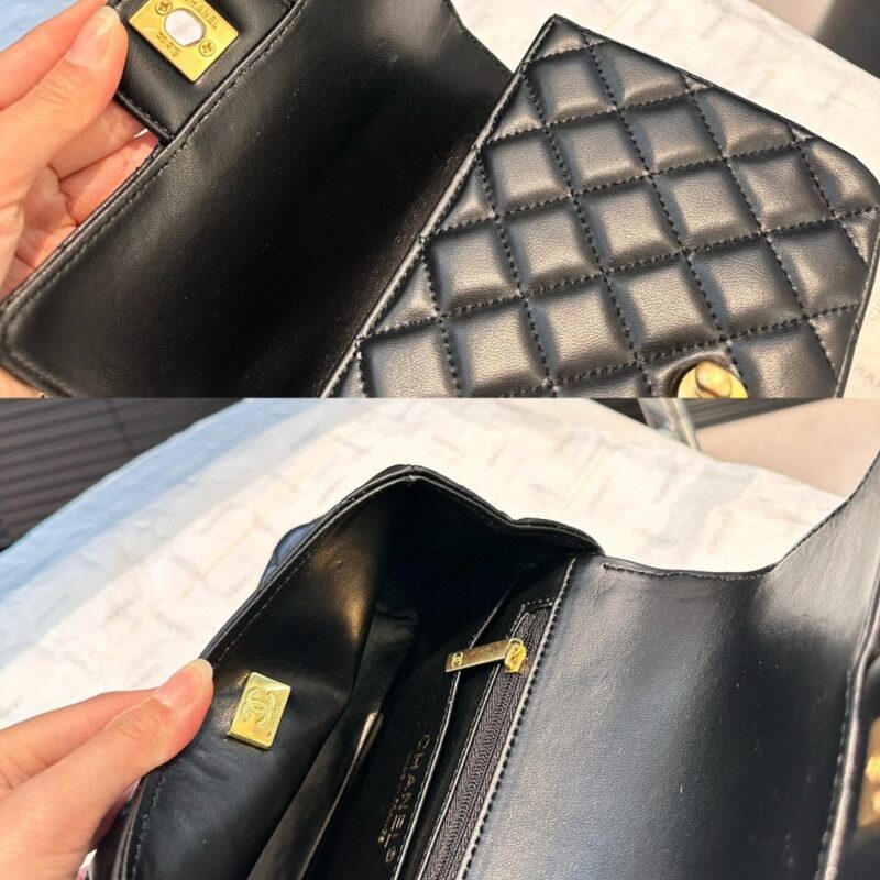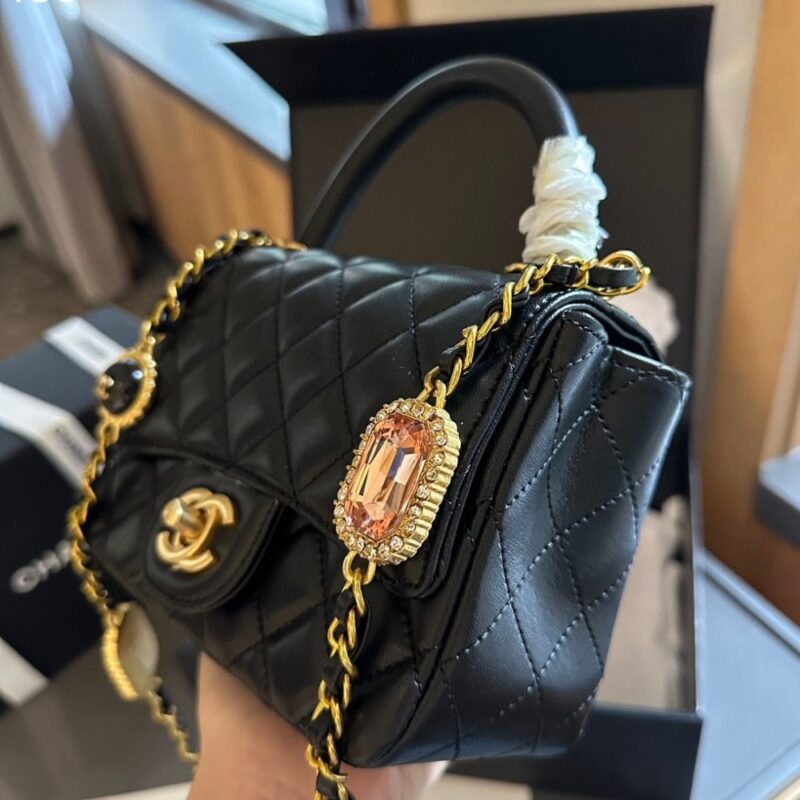 Gucci Mini Flap Bag With Top Handle Bijoux Chain Black As4370 B16910 94305 18cm/7.1in