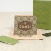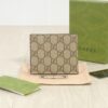 The Gucci Neo Vintage wallet features a refined blend of classic and modern design, highlighted by the iconic GG Supreme pattern and the signature metal cat head emblem set on an oval leather tag – an unmistakable symbol of the Gucci brand. Inside, the bold yellow leather lining adds a fresh and contemporary contrast to this practical bi-fold wallet.