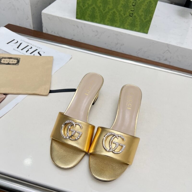 GUCCI NOJUM WOMEN’S SLIDE SANDAL METALLIC GOLD ‎817257 B8B00 8024