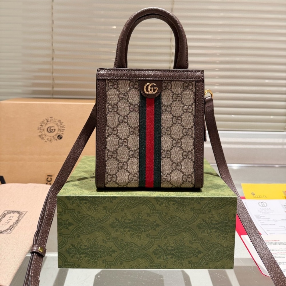 SUMMER SET: GUCCI OPHIDIA MINI TOTE BAG BEIGE AND EBONY 22CM & CANVAS BUCKET HAT WITH DOUBLE G BROWN