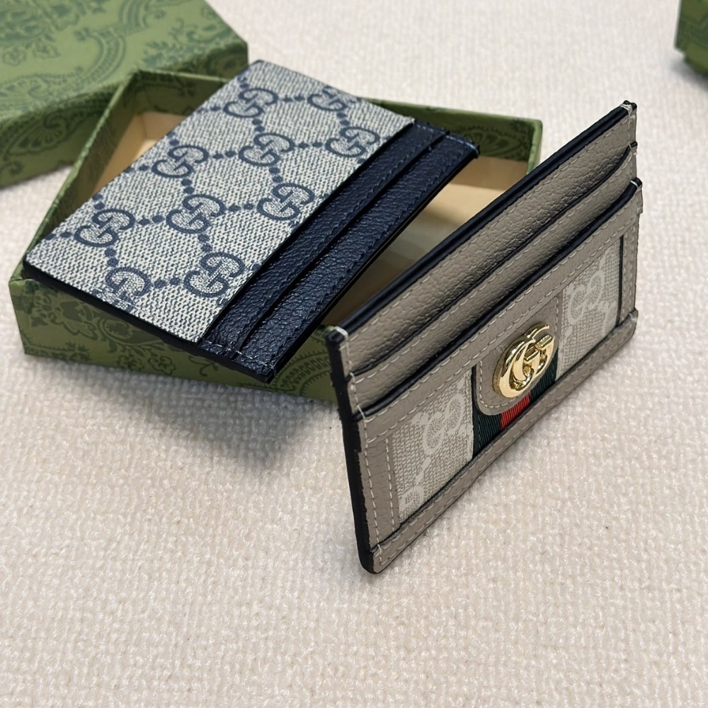 Gucci Ophidia GG Supreme Card Case Beige Blue 523159 96IWN 4076 / 9 cm / 3.5 inches