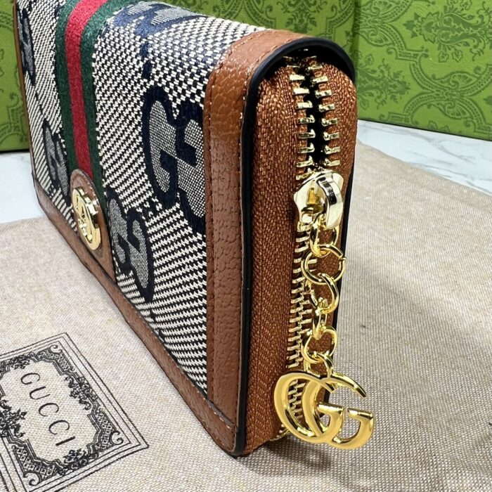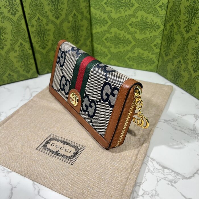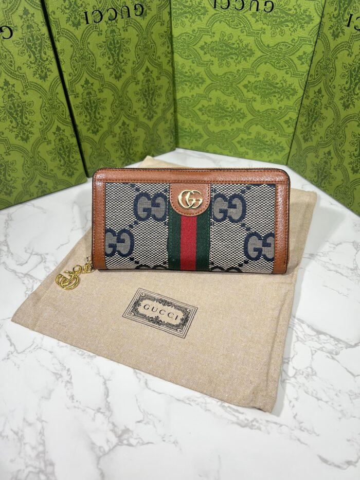 GUCCI OPHIDIA LONG WALLET BROWN AND NAVY BLUE 19.5CM