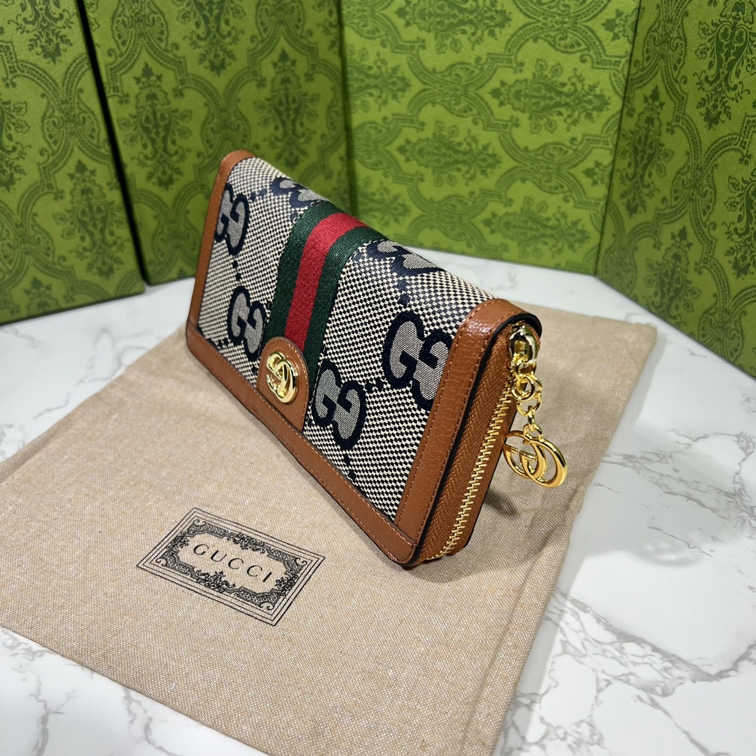 Gucci Ophidia/19.5cm Long Wallet Brown And Navy Blue
