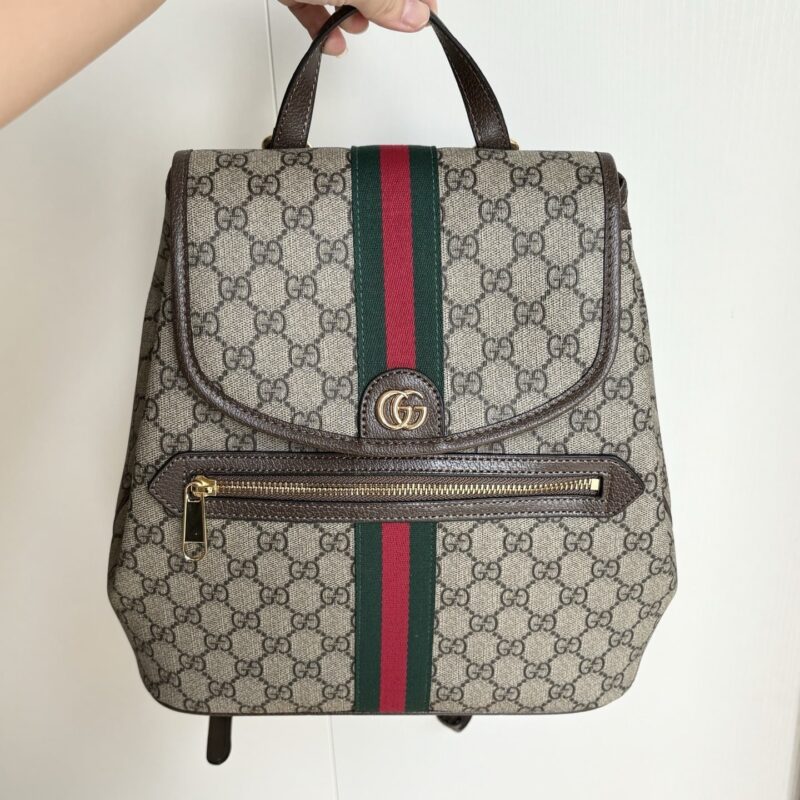 - Beige and dark brown GG Monogram coated fabric